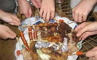 人数が多いと食べ物の奪い合いはやはり凄いですね〜